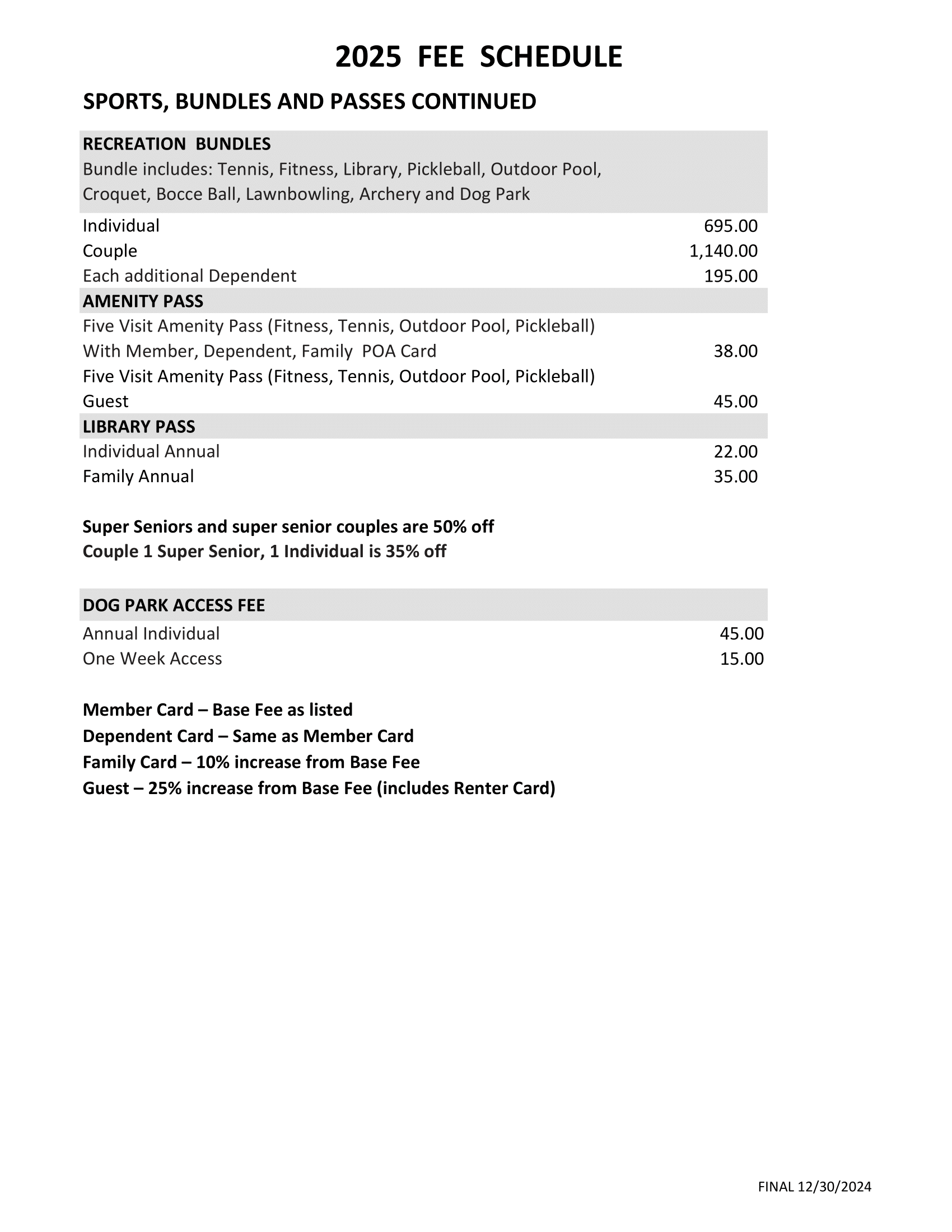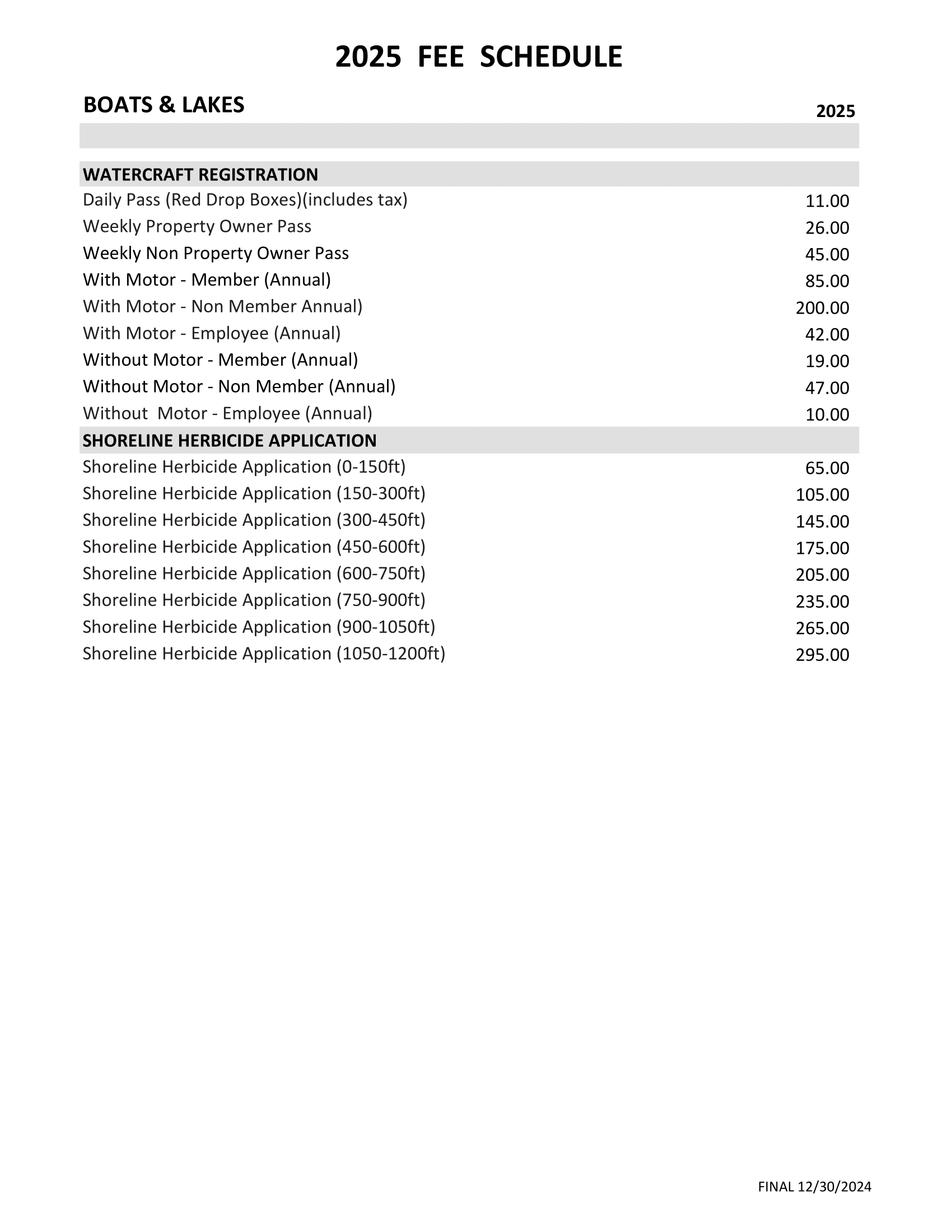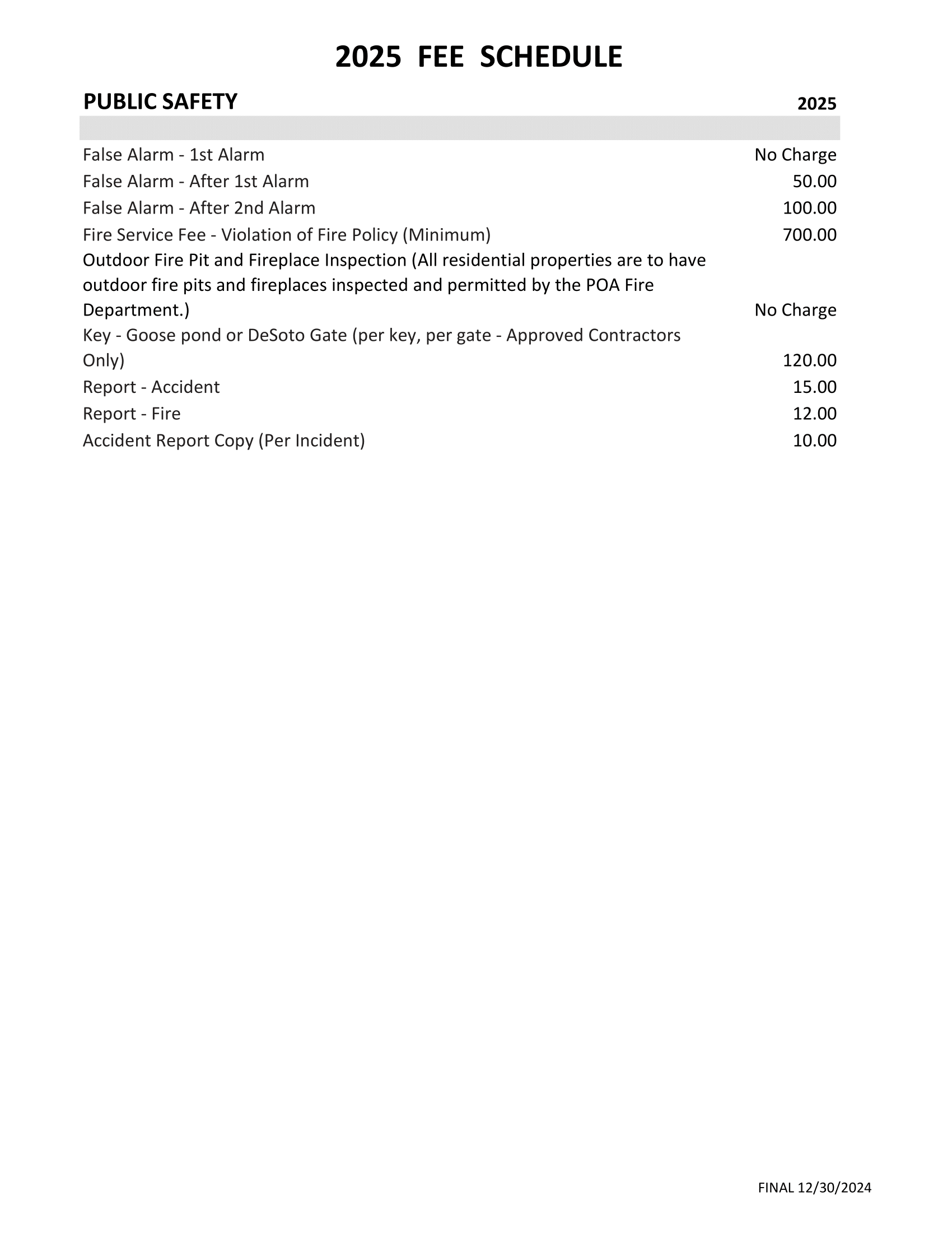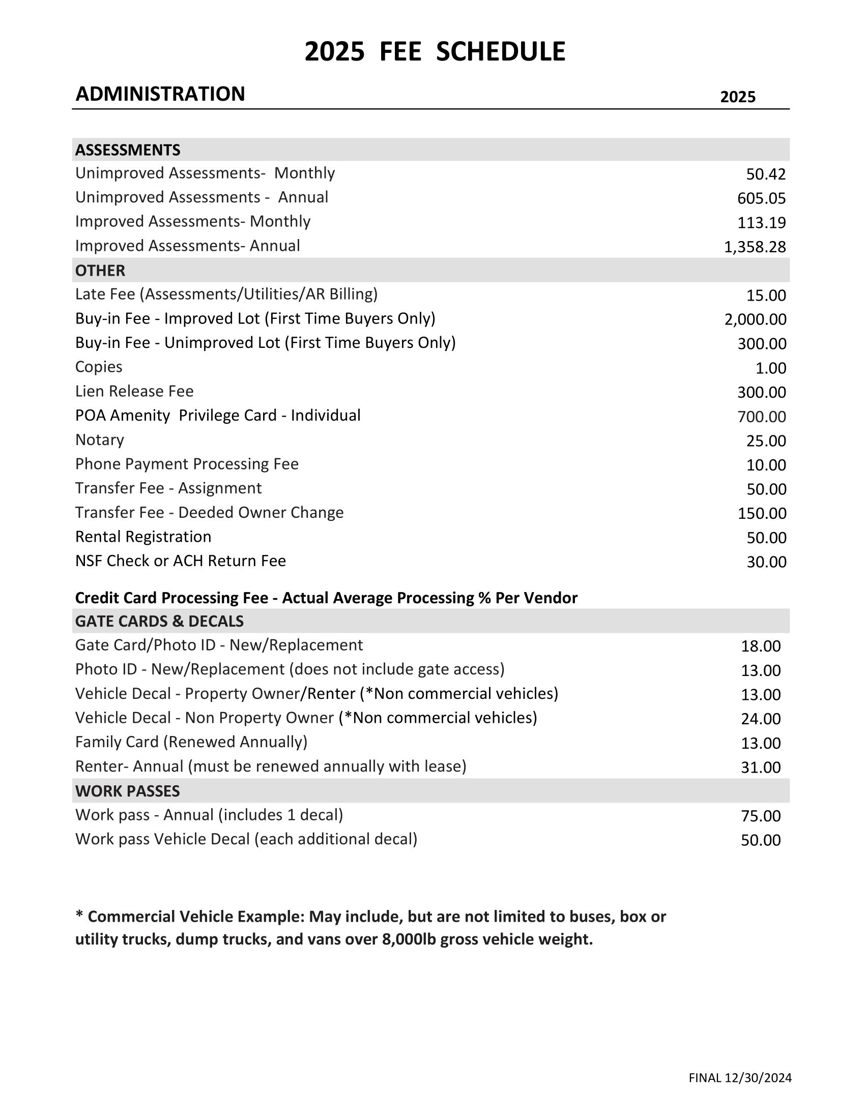 2025 Fee Schedule
