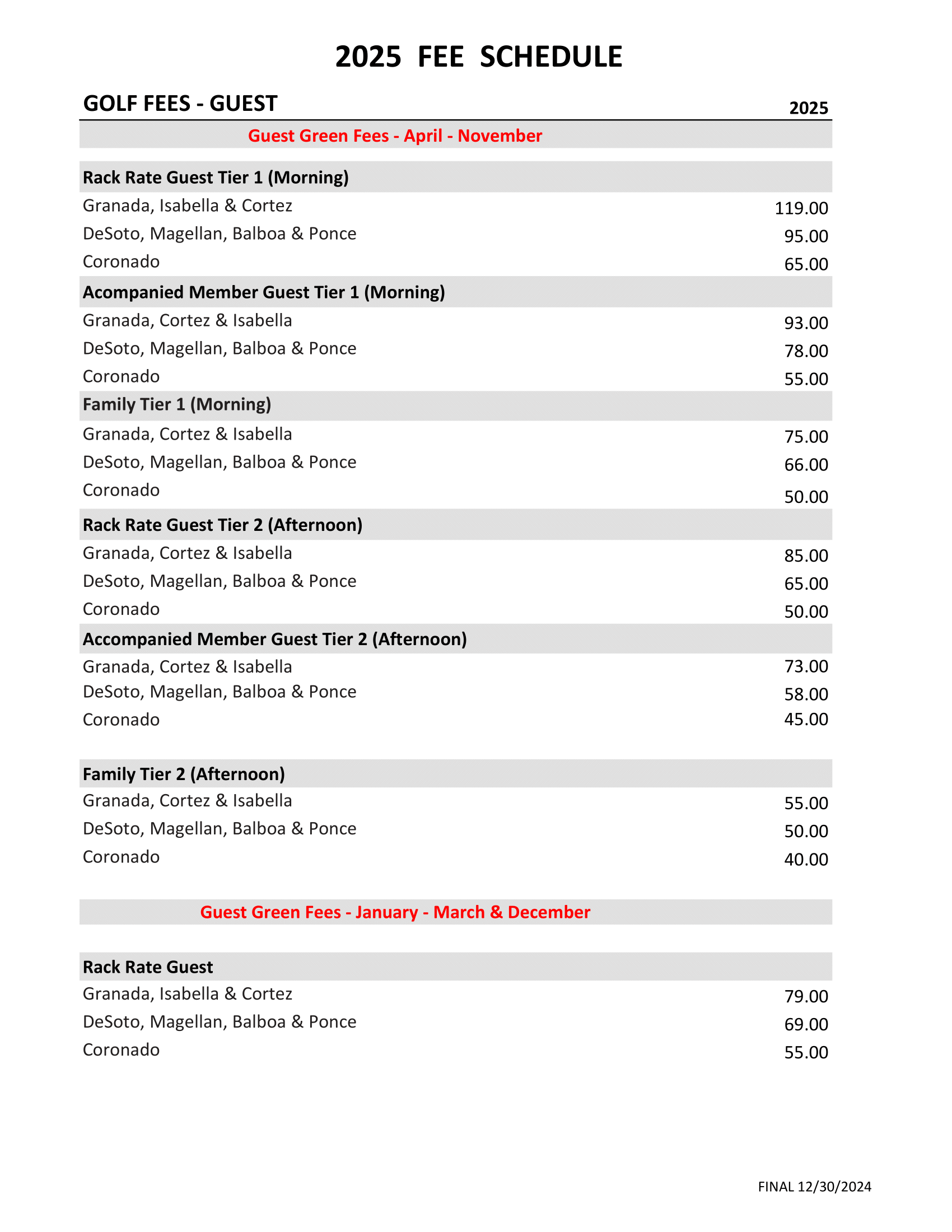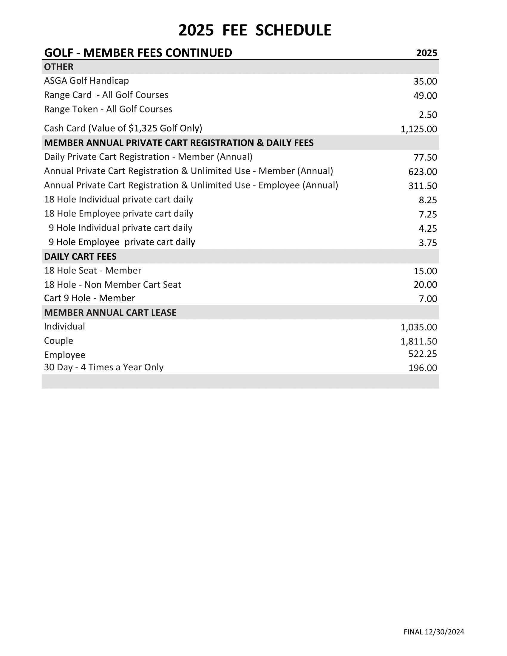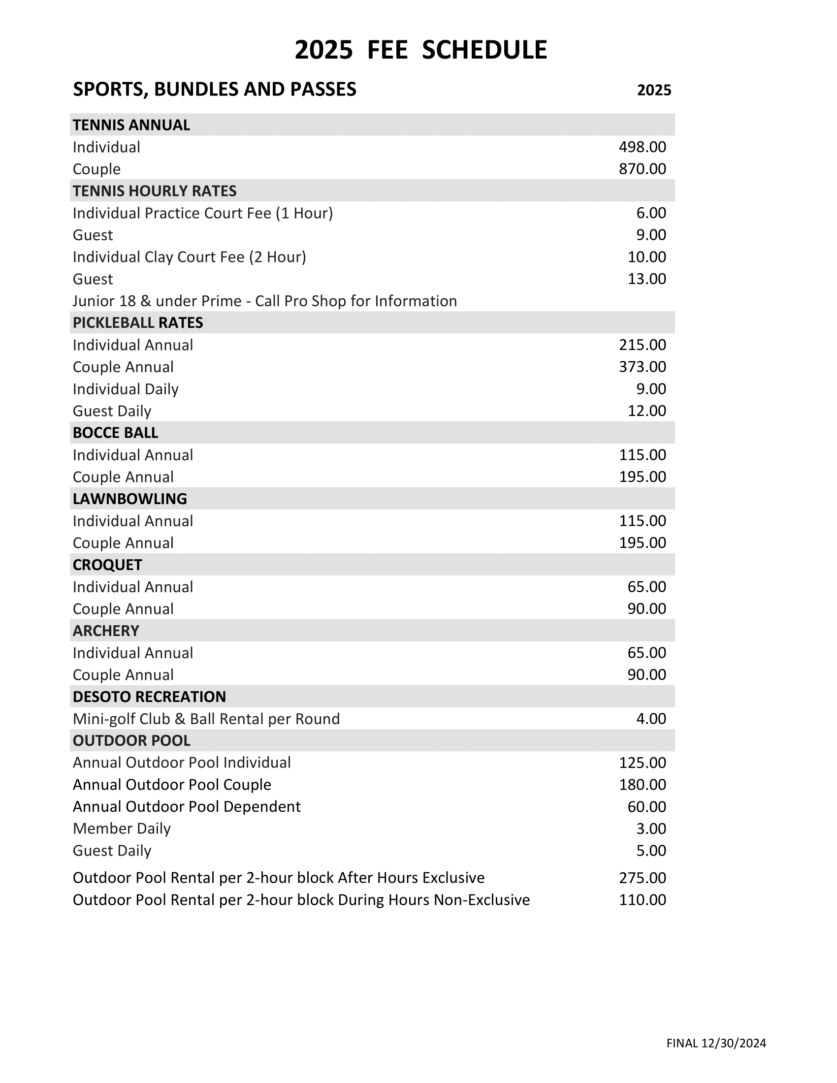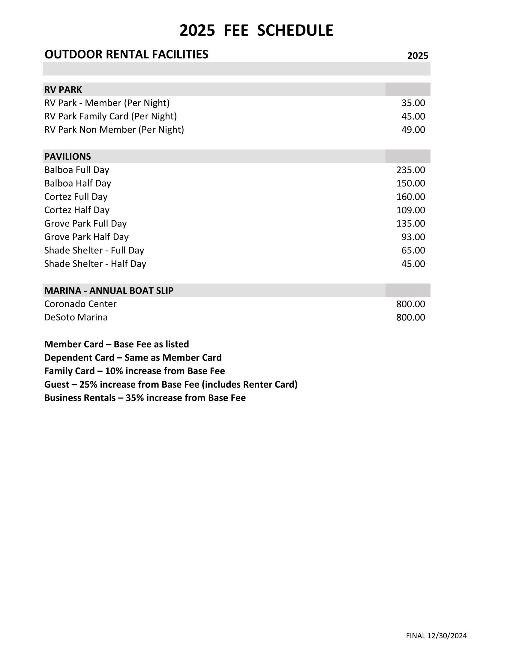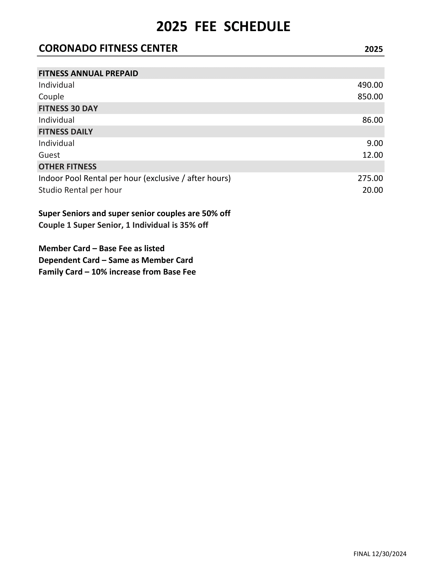 2025 Fee Schedule